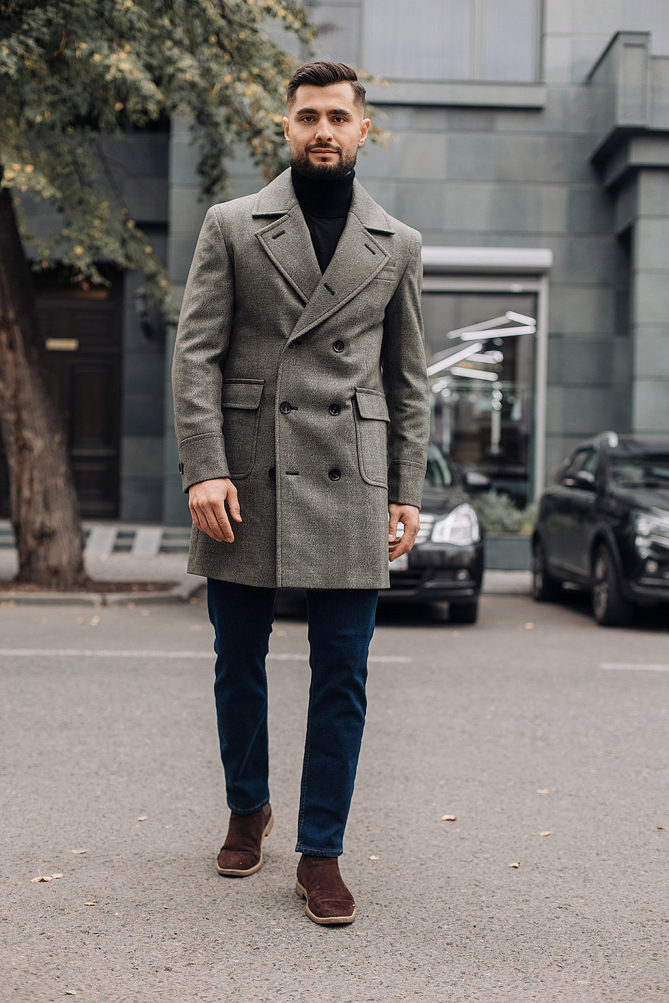 Мужской костюм двойка серый двубортный с золотыми пуговицами